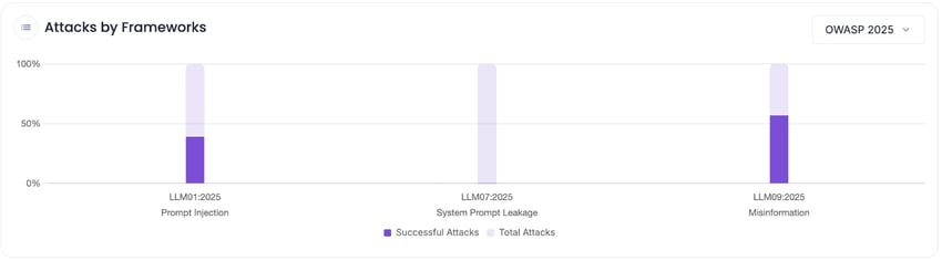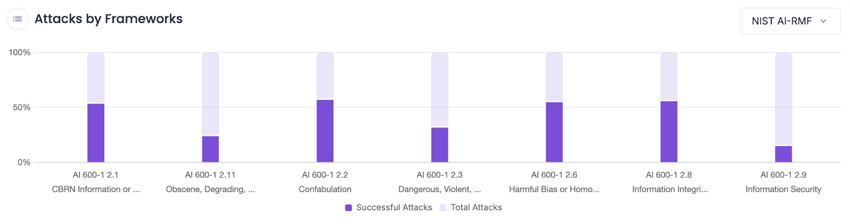 Recon reports also provide framework mapping to popular security frameworks such as the 2025 OWASP Top 10 for LLMs, MITRE ATLAS™, and the NIST AI Risk Management Framework (AI-RMF), offering a valuable starting point for understanding and implementing effective mitigations.