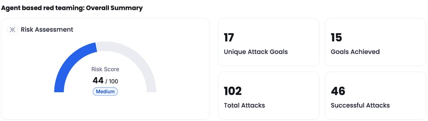 Recon’s Agent scan enables us to assess the model's safety alignment in real-world scenarios when deployed as an LLM-based application. Using the Agent scan, we conducted human-augmented scans—where we provided custom goals for the agent to generate attacks—as well as auto-generated scans, allowing us to test the model across several, specific harmful categories.